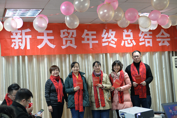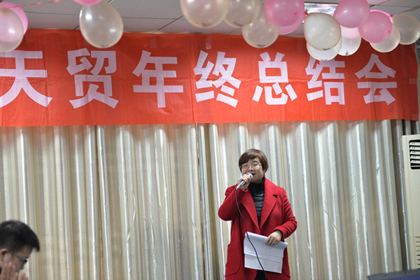 首先,天贸钢铁网董事长高道花女士为大家做了2016年工作总结及2017年工作计划。是高总的英明领导,让大家有了发展的正确方向,给予了大家前进的动力。回首2016年,是充满波折与挑战的年度。2016年印象最深的当然是新天贸上海股交所挂牌。其次就是在业务工作开展困难层层的情况下,与钢厂关系更为密切,为进军贸易探索出基本流程和问题,成功开展了钢材代理采购生意。以及为拓展业务开展的一系列活动。在公司领导的正确决策下,天贸员工团结一致,开拓进取,用自己辛勤的汗水,取得了难得的成绩,这中间也涌现出了一批优秀的员工。副总经理周荣宣布表彰2016年度先进内勤工作者和优秀业务工作者。