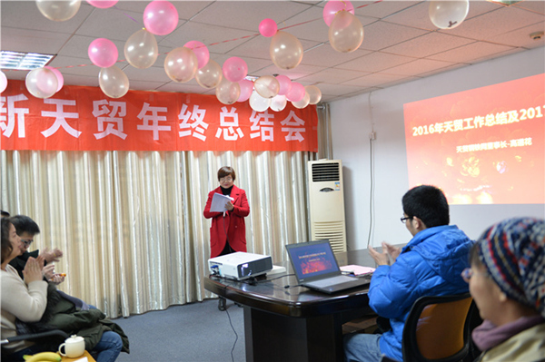 今天,是个美好的日子!天贸的各位将士们相聚一堂,我们所取得的成绩,还应该感谢在座的每位同事们,我们为自己一起鼓掌加油吧!回首2016年,我们采撷收获与梦想,展望2017年,我们将团结一心,锐意进取,争创崭新的业绩!