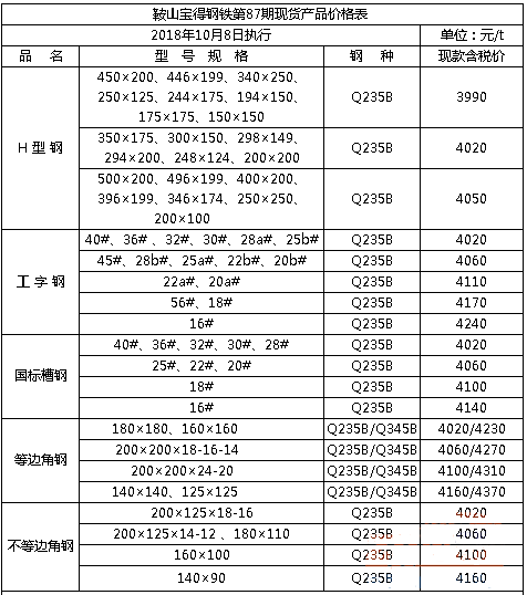 2、以上价格均为检尺含税价,执行日期自2018年10月8日起。