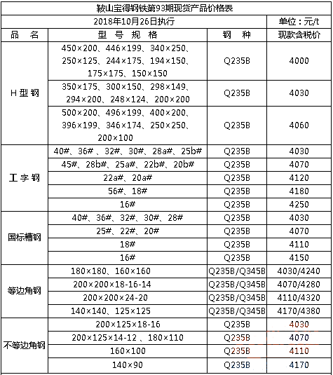 2、以上价格均为检尺含税价,执行日期自2018年10月26日起。