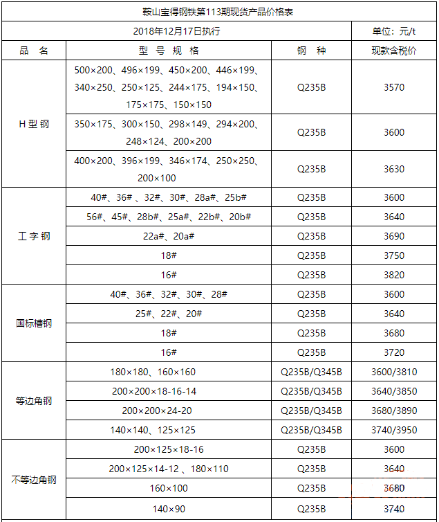 2、以上价格均为检尺含税价,执行日期自2018年12月17日起。