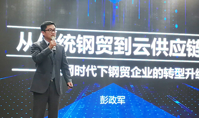 资深产业互联网研究专家、中国金属流通协会钢铁电商分会副会长、中国物流与采购联合会物流与供应链金融分会副会长、大大买钢网联合创始人彭政军先生,为大家做了题为“从传统钢贸到云供应链”的演讲。