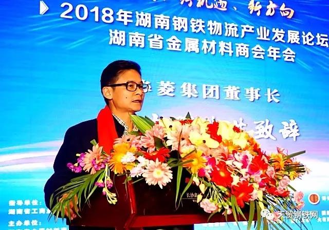 论坛上,华菱集团曹志强董事长致辞表示,很荣幸参加我们湖南省金属材料商会年会和论坛,今天来首先我是要对省金属材料商会表示衷心的感谢,在过去的2017年,华菱集团钢产量首次突破2000万吨,销售收入1200亿元,利税94亿元。创造了华菱建企以来的最好水平,这些成就的取得离不开国家供给侧的改革,离不开钢铁行业去产能、打击地条钢,整个行业回暖,这个宏观大的形势,当然离不开华菱集团自身的努力,但是更离不开我们湖南省金属材料商会一直以来对华菱集团关心、支持和关爱。正是因为商会在湖南这样一个区域性的地方,创造了一个非常良好的金属材料流通大好环境,让华菱集团有机会把自己40%的钢材产量投放在这样一个市场,正是有这样一个好的市场促进了华菱成绩的取得。所以我今天来要表示衷心的感谢! 第二个我也是送上最衷心的祝贺,湖南省金属材料商会成立16年了,我们成立于中国钢铁行业的黄金十年,我们也经历了全球的金融危机,在2017年我们也迎来了南方钢铁好企业和钢铁行业新的春天。无论是在顺境还是在逆境,省金属材料商会在省工商联的指导下,在罗会长的领导下,一直欣欣向荣,一直在湖南这个区域里面创造了全国少有的经商环境,而且我们商会在湖南省的经济和社会贡献上,除了得到省工商联的高度认可,也得了我们湖南省的钢铁产业链上下游的所有的朋友们的认可。而且我们也让全国很多地方羡慕我们有这么好的商会,有这么好的经商环境,那么这份成绩的取得是很难的。我特别要祝贺我们湖南省金属材料商会在成立16年以来取得的如此辉煌的成绩。第三个也是送上一份祝愿,在党的十九大胜利召开之际,我们迎来了新的一年,我们面临着很多新的机遇和挑战,不可回避的中国经济正在进入结构优化、动力转换关键期,我们从高速发展阶段变成高质量发展阶段,中国也在构建新的经济体系,那么在这样一个大的背景之下,实体经济必然是成为我们建设现代化经济体系的抓手,那么这会给我们钢铁流通业带来很多的发展机会,钢铁行业也必经在这样一个背景之下,进一步加大化解过剩产能、加快兼并重组,加快质量升级,加快对环保的投入。中国钢铁行业的质量和效益升级,也会给我们湖南金属材料商会带来很多新的机遇。我坚信湖南金属材料商会一定会有更美好的明天。