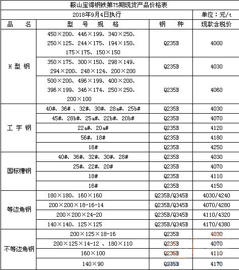 2、以上价格均为检尺含税价,执行日期自2018年9月4日起。