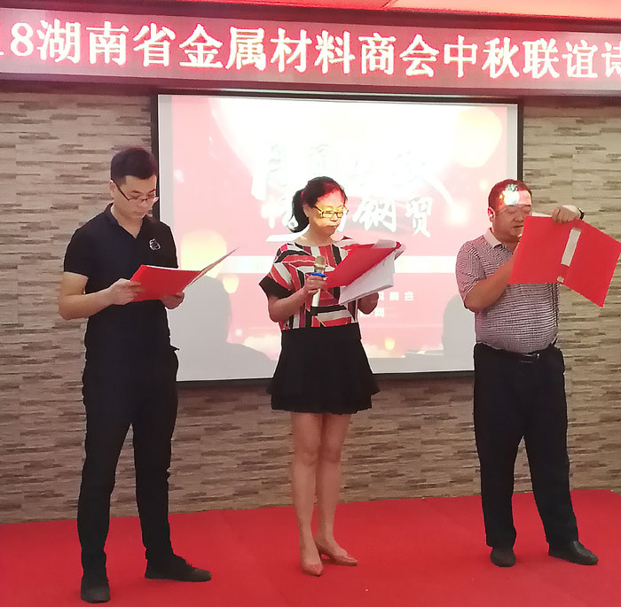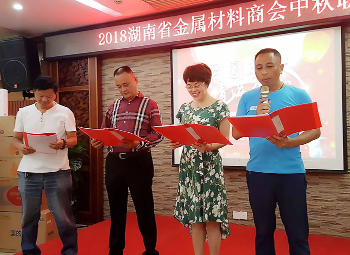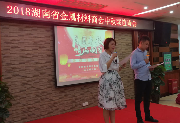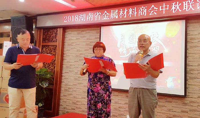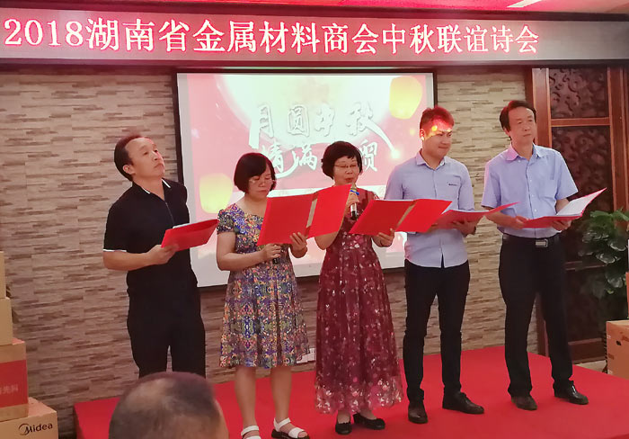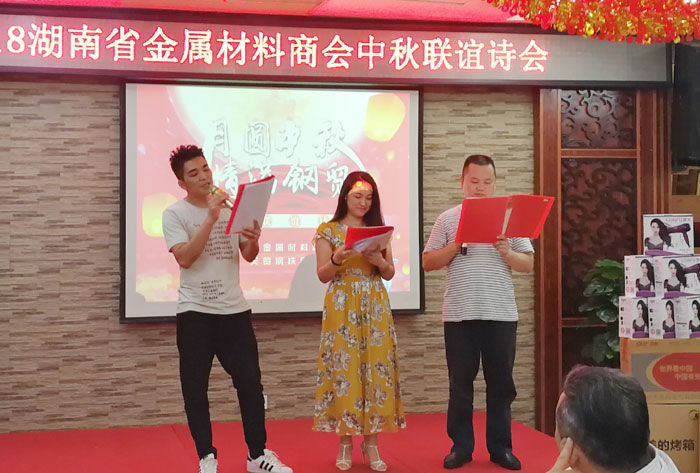 月圆中秋,情满钢贸,湘江赏明月,天涯共此时。9月14日傍晚,由湖南省金属材料商会·天贸钢铁网举办2018年中秋联谊诗会在长沙天怡青年酒店一楼举行,近100名商会会长、副会长、秘书长、会员欢聚一堂,共庆佳节。