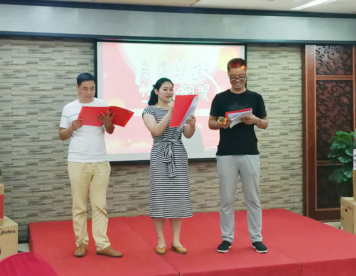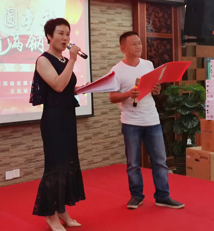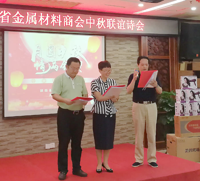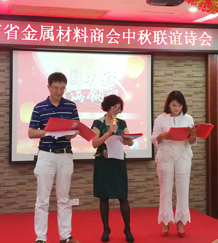 王军彦、侯贵红副会长和天外天钢铁唐姣总经理诗朗诵《中秋节的祝愿》