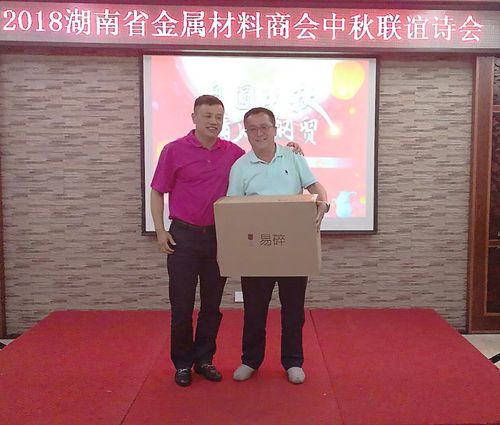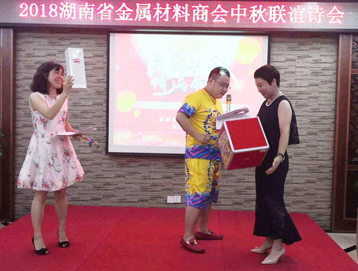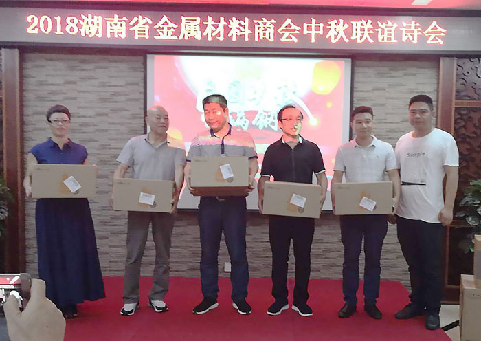 诗会最后,进行了抽奖环节。本次活动的抽奖奖品由商会罗劲军会长、钢管专业委员会唐俊会长,型材专业委员会彭杏玲会长,刘志勇副会长,吴友珍副会长,肖怒安副会长、高道花秘书长友情提供。