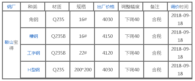 2、以上价格均为检尺含税价,执行日期自2018年9月18日起。