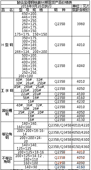 2、以上价格均为检尺含税价,执行日期自2018年9月26日起。
