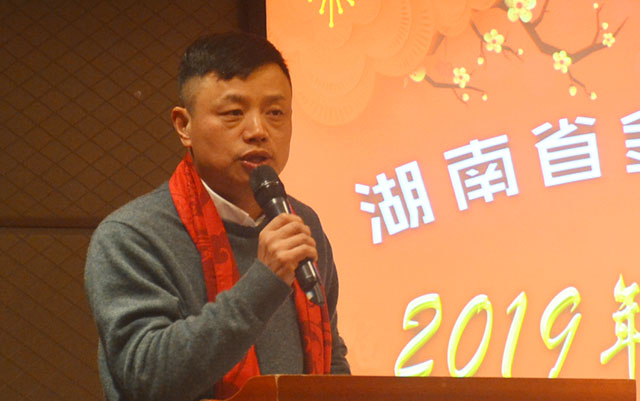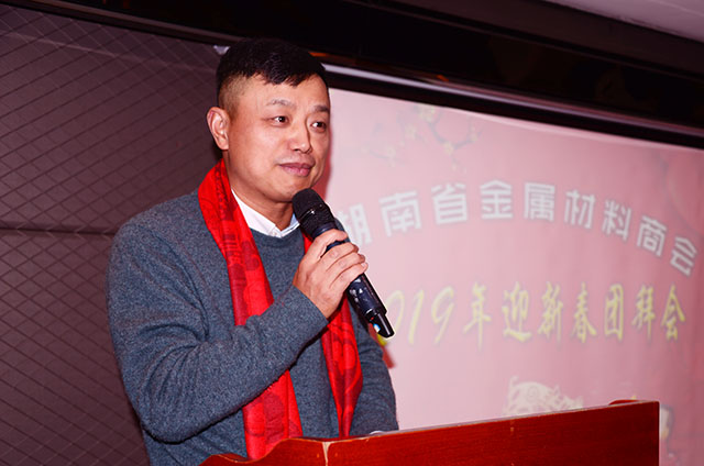 节目开始之前,先由湖南省金属材料商会会长罗劲军做新春致辞。会长首先对所有会员单位在2018年对协会的支持表示了感谢,他表示商会14年,始终是我们感情交流、信息沟通、抱团发展的平台。面对2019年的换届,他相信,新一届的商会会以更广阔的视野,更新的思维,不忘初心,为大家服务。