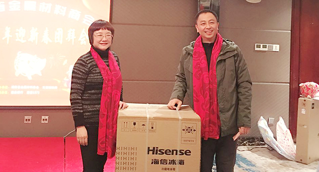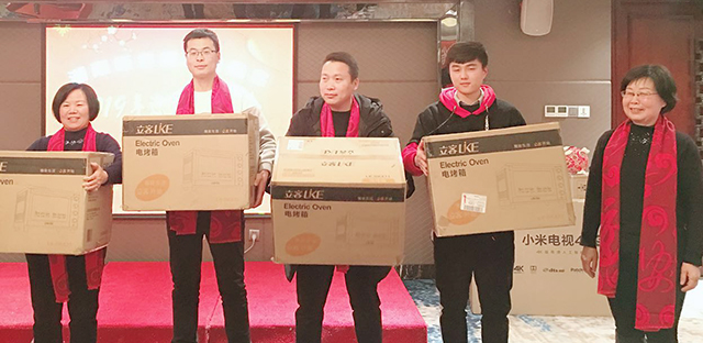 会议进行过程中,为了活跃会场气氛,进行了抽奖活动。本次活动的抽奖奖品是由湖南金属材料商会提供的多士炉烤面包机、立容38升电烤箱、海信100升小型电冰箱和50寸小米超高清智能彩色电视机。
