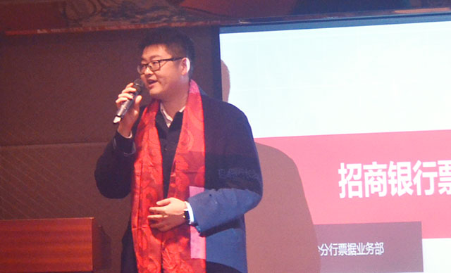 接着,招商银行票据业务部刘锐经理为大家做了“银行票据大管家助力企业创新经营”的演讲,简单的为大家讲解了年底如何利用票据大管家实现票据业务全面整合,给钢铁行业带来更多的便利,提升收益。