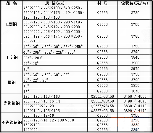 1、以Q235B材质价格为基础,Q345B材质的加价280元/吨;