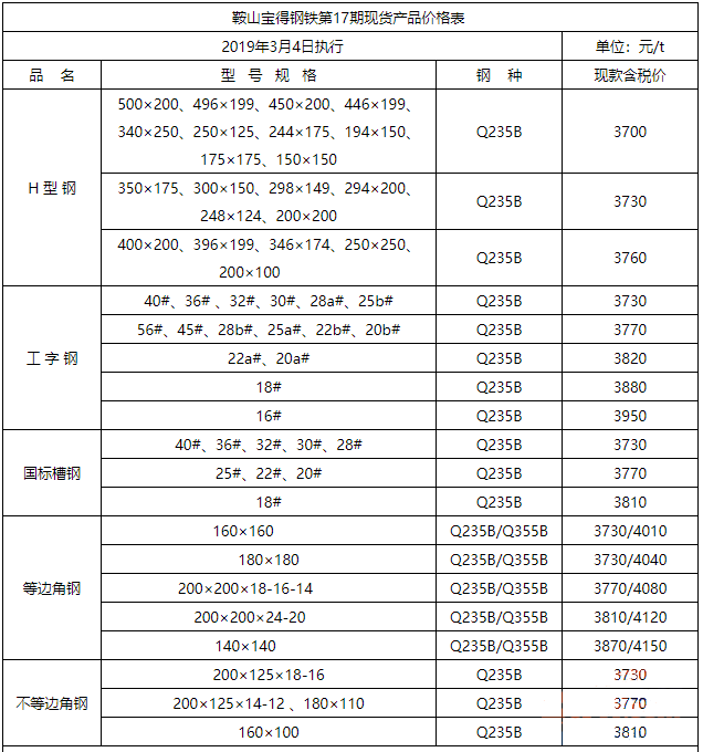 2、以上价格均为检尺含税价,执行日期自2018年3月4日起。