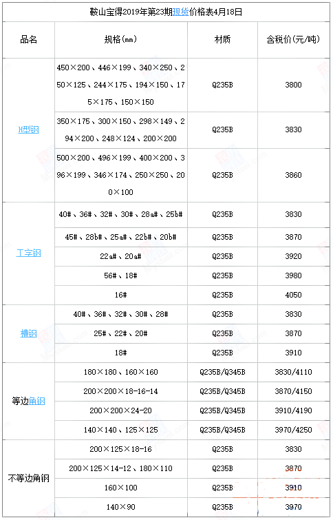 2、以上价格均为检尺含税价,执行日期自2018年4月18日起。