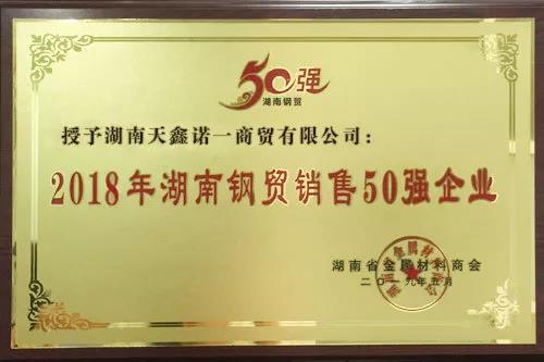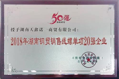 “2018年湖南钢贸销售线螺单项20强企业”称号