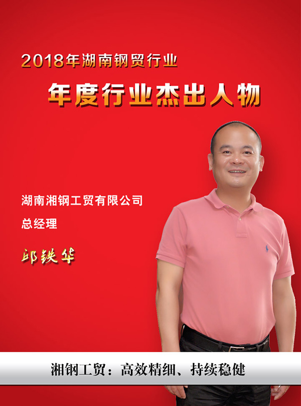 您是一位资深钢贸人士,资历深,成就高,为人却低调。2018年,你带领的团队实现了骄人的销售业绩,浸透着你无数的心血和汗水。在企业经营管理中严于律已,以精细化管理孜孜不倦的进取开拓。你当担团队表率、是踏雪破风的公司领路人!你的出彩,是湘钢工贸和湖南钢贸的荣耀!