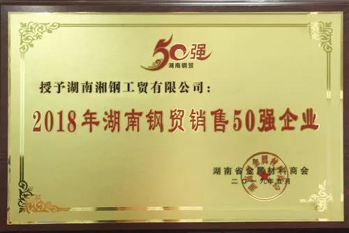 “2018年湖南钢贸销售线螺单项20强企业”称号
