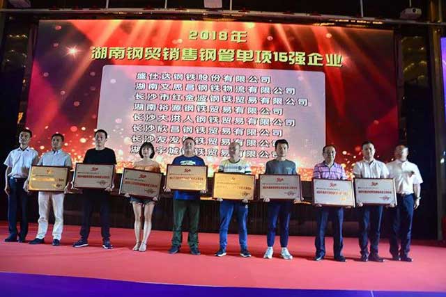“2018年湖南钢贸销售钢管单项15强企业”称号