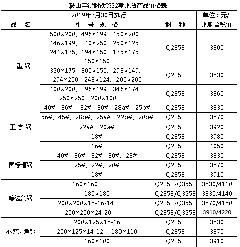 2、以上价格均为检尺含税价,执行日期自2018年7月30日起。