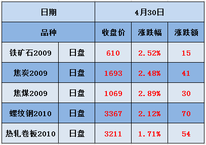 今日(周五)收盘黑色系集体反弹。其中铁矿石、焦炭、焦煤及螺纹钢主力合约均涨逾2%,热轧卷板主力合约涨超1%。期螺期卷止跌上行,市场情绪有所好转,局部地区小幅上涨。